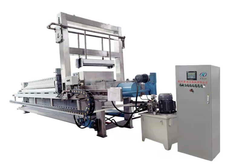 壓濾機(jī)液壓壓緊機(jī)構(gòu)的組成由液壓站、油缸、活塞、活塞桿以及活塞桿與壓緊板連接的哈夫蘭卡片液壓站的結(jié)構(gòu)組成有電機(jī)、油泵、溢流閥(調(diào)節(jié)壓力)換向閥、壓力表、油路、油箱。液壓壓緊機(jī)械壓緊時(shí),由液壓站供高壓油,油缸與活塞構(gòu)成的元件腔充滿(mǎn)油液,當(dāng)壓力大于壓緊板運(yùn)行的摩擦阻力時(shí),壓緊板緩慢地壓緊濾板,當(dāng)壓緊力達(dá)到溢流閥設(shè)定的壓力值(由壓力表指針顯示)時(shí),濾板、濾框(板框式)或?yàn)V板(廂式)被壓緊,溢流閥開(kāi)始卸荷,這時(shí),切斷電機(jī)電源,壓緊動(dòng)作完成,退回時(shí),換向閥換向,壓力油進(jìn)入油缸的有桿腔,當(dāng)油壓能克服壓緊板的摩擦阻力時(shí),壓緊板開(kāi)始退回。液壓壓緊為自動(dòng)保壓時(shí),壓緊力是由電接點(diǎn)壓力表控制的,將壓力表的上限指針和下